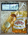 1 Packung Mandeln mit Honig geröstet (z.B. 125 g) 1 kleine Geschenkkassette (offene Welle), Boden natur,