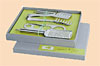 Käsemesser, Schaber, Käsebeil und Reibe aus Metall, im Geschenkkarton kombinierbar mit diversen Käsespezialitäten.