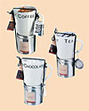 Schokotasse mit 20g Schokopulver und Löffelmixer. Tasse aus Keramik, verpackt im transparenten PVC-Schuber.